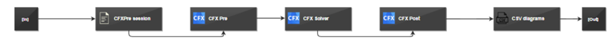 之后,“CFX Pre”块启动预处理会话并为求解器生成输入文件,然后由“CFX Solver”块触发求解过程,并由“CFX Post”块启动后处理会话。