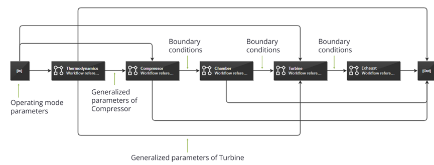 在整机仿真中,常需根据上游仿真结果动态设定下游仿真的边界条件。PERA平台支持通过主工作流整合这些独立子工作流。其中,“工作流程引用”块可关联至如“压缩机”研究等现有工作流的最新版本,使得各团队可并行更新维护所属模块,而主工作流保持同步更新,极大提升了复杂项目管理的灵活性与可维护性。具体包括以下内容。