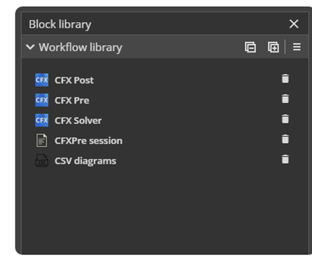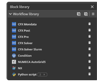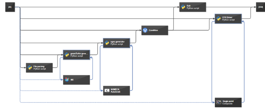 通过使用特殊模块(图15),工作流程的构建变得更加便捷。这些模块与工程应用程序(NX、Numeca、Ansys CFX)实现了无缝连接。此类模块可以开发用于任何类型的软件,并支持批量执行。