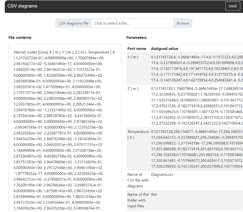 为了读取和输出结果,我们使用了“CSV 图表”模块。在编辑模式下(图 6),用户可以打开该模块并上传从 Ansys CFX Post 获取的 CSV 文件模板。该模块会自动生成与 CSV 文件中的数据对应的模块输出端口列表。