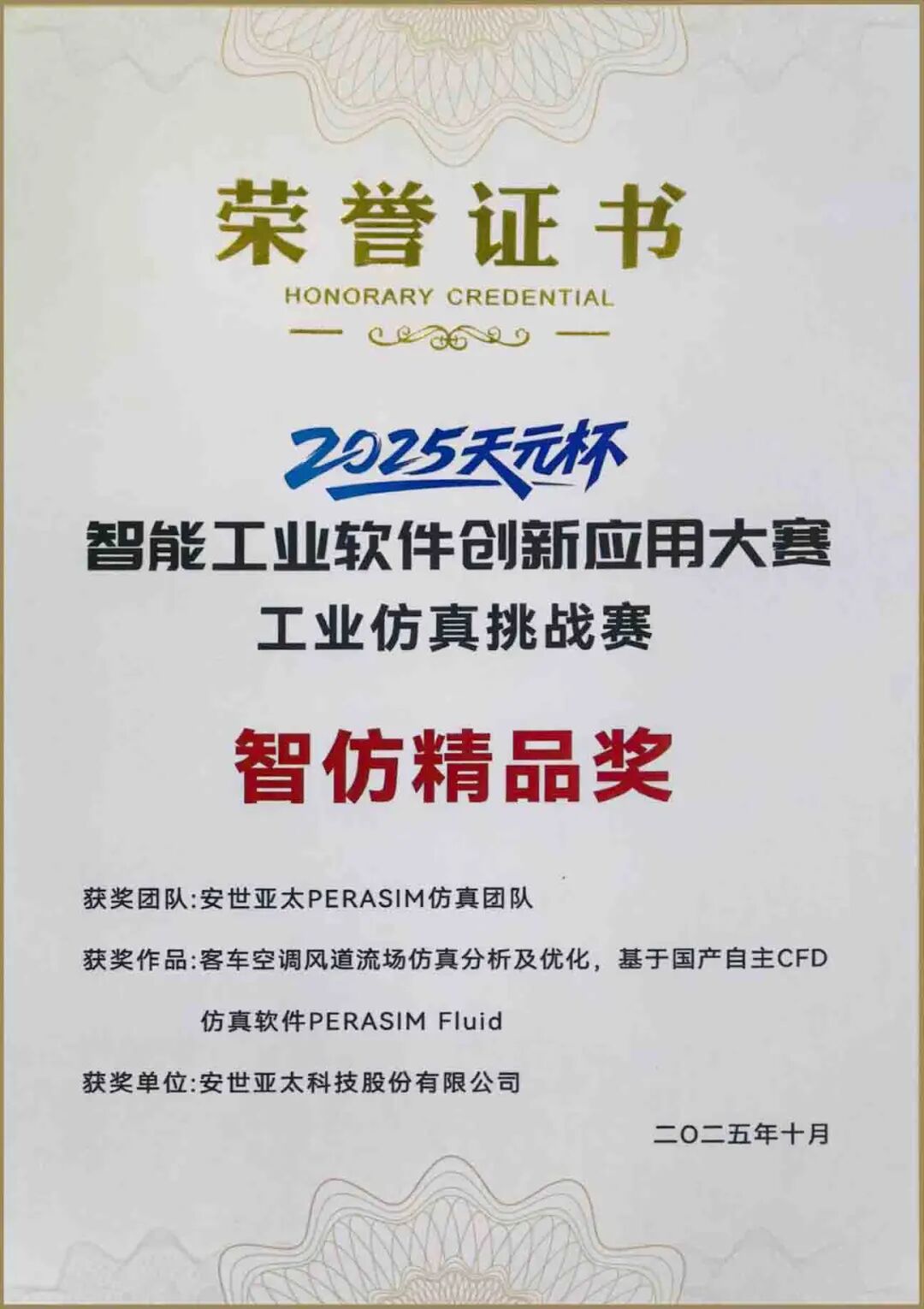 祝贺!安世亚太荣获“2025天元杯”工业仿真挑战赛 智仿精品奖