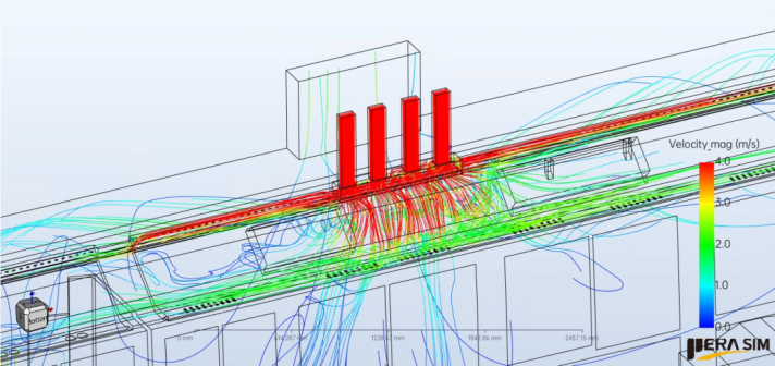 此次,安世亚太参赛作品是客车空调风道流场仿真分析及优化——基于国产自主CFD仿真软件PERA SIM Fluid,依托自主研发的PERA SIM通用仿真平台,对原始风道进行几何清理、800万多面体-边界层网格划分及SST k-ω稳态计算,发现部分出风口风速低于2 m/s且均匀度不足。通过引入楔形导风结构,并优化导角,将风速均匀度由0.82提升至0.93,出风口2+3风量占比由30.8%提高到36.2%,实现全部出风口风速达标,为客车空调系统提供了高效、精准、可落地的国产仿真优化范例,赢得评审专家一致认可。