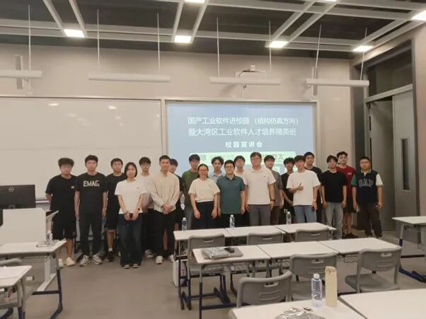 大湾区对国产工业人才强烈需求,是这场育人实践的缘起。深圳技术大学中德智能制造学院老师深知传统教学中存在“理论与产业脱节”的难题:学生掌握了有限元分析公式,却不懂如何应对工厂里的真实仿真需求;拿到学历证书,却难以匹配企业对CAE分析师的技能标准。学校领导班子从顶层设计入手,创新性提出“产—学—研—证—赛—用”六位一体培养模式。从筛选契合的产业伙伴,到搭建工程实践平台,再到打通职业认证通道,每一步都紧扣“产业需求”核心,只为让学生既能扎根理论,又能接轨实战,真正成长为国产工业软件领域的“可用之才”。这份以产业为导向的教育远见,为精英班的成功奠定了坚实基础。